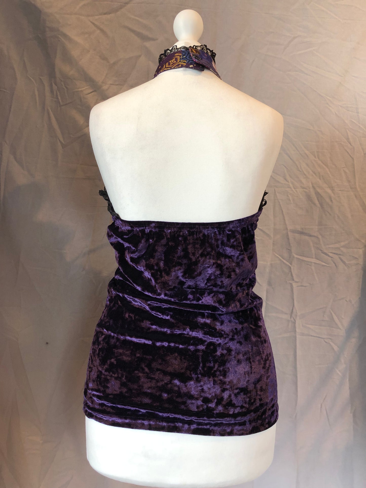 Qutie Frash Purple Velvet Mesh Halter Top