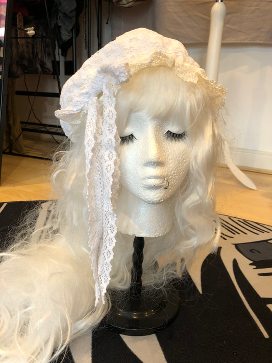 Uf. Lace Bonnet Hat with Detachable Bow