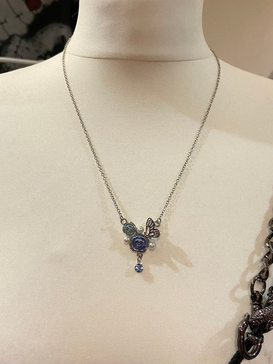 Axes Femme Blue Rose Butterfly Necklace