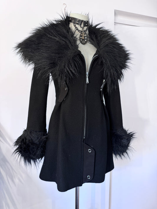 Black Peace Now Fur Collar Velvet Dress Coat
