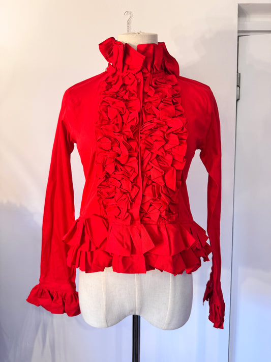 Sold outSexy Dynamite Red Ruffle Button-Up
