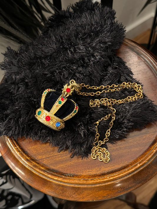Black Peace Now Crown Pendant Jewel Necklace