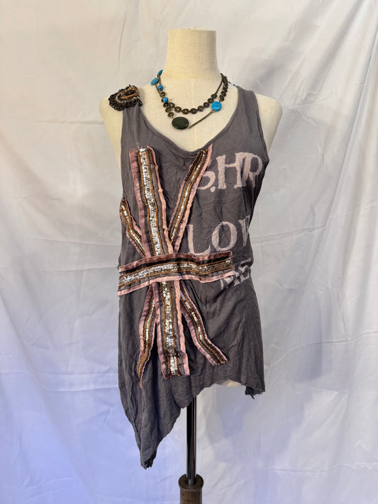 Share Spirit Letter Print and Jewel Tank Top