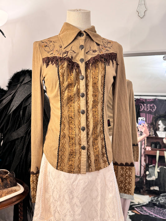 Sold outOZZ ON Floral Print Suede Button-Up