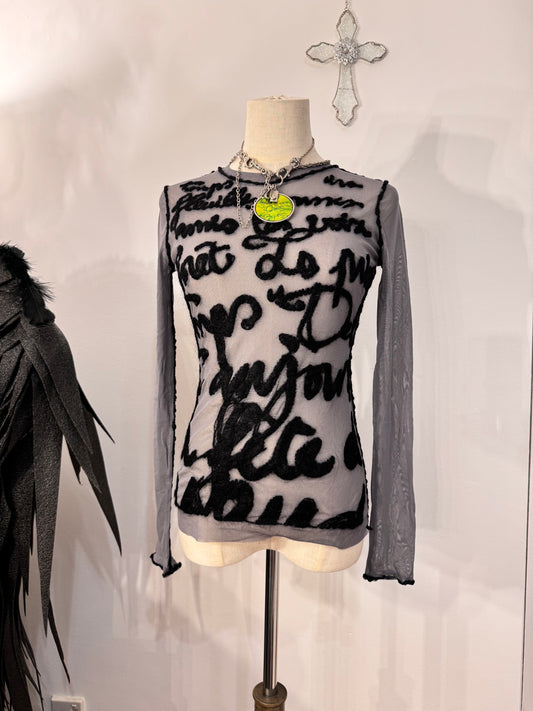 Jean Paul Gaultier Letter Print Mesh Top