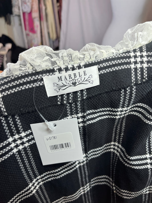 Sold outMarble Ruffle Lace Plaid Blouse