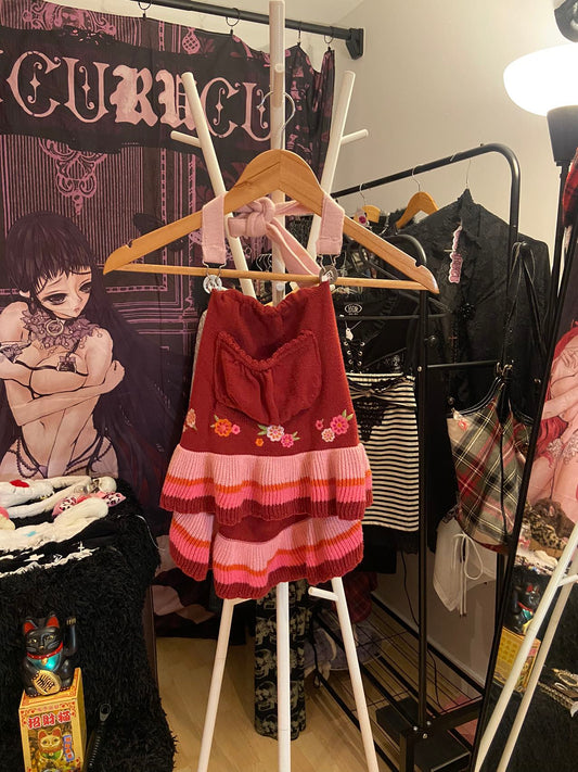 Red Flower Wool Halter Top