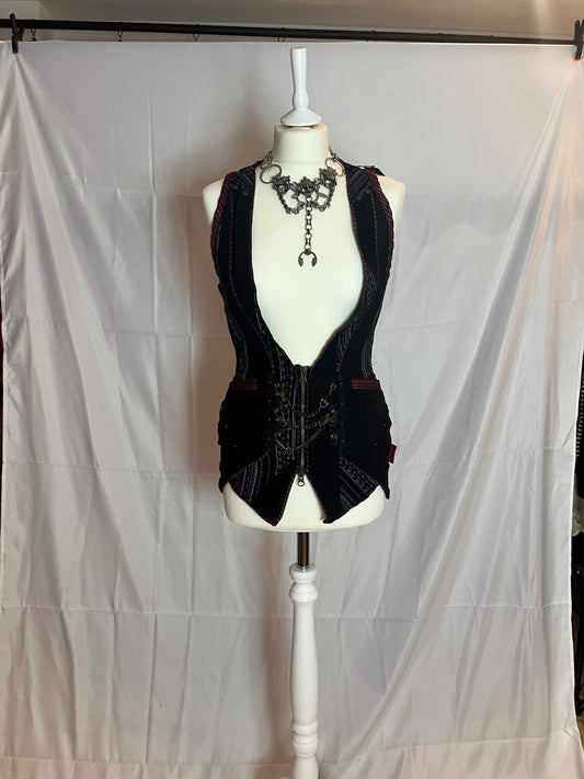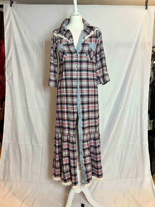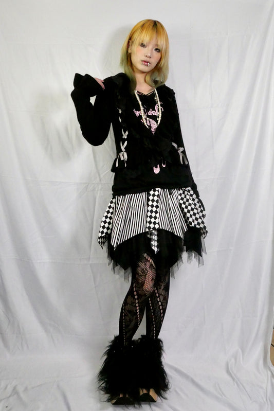 Algonquins Checkboard Stripe Mesh Multi-Layer Skirt
