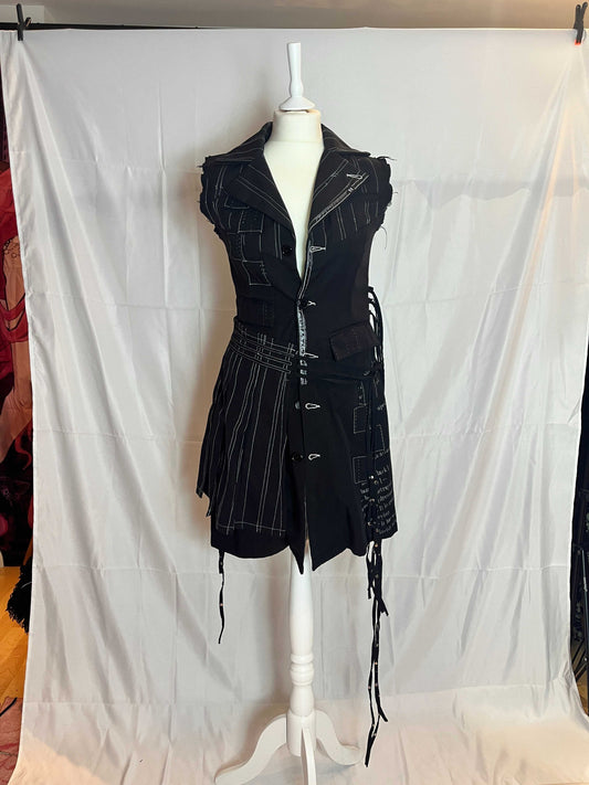 h.Naoto Stripe Vest Dress with Detachable Skirt