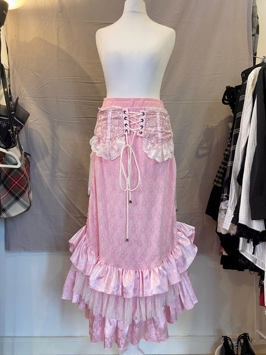 Qutie Frash Pink Ruffle Lace Maxi Skirt