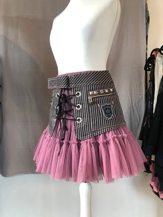 OZZ ON Steampunk Lace-Up Ruffle Skirt
