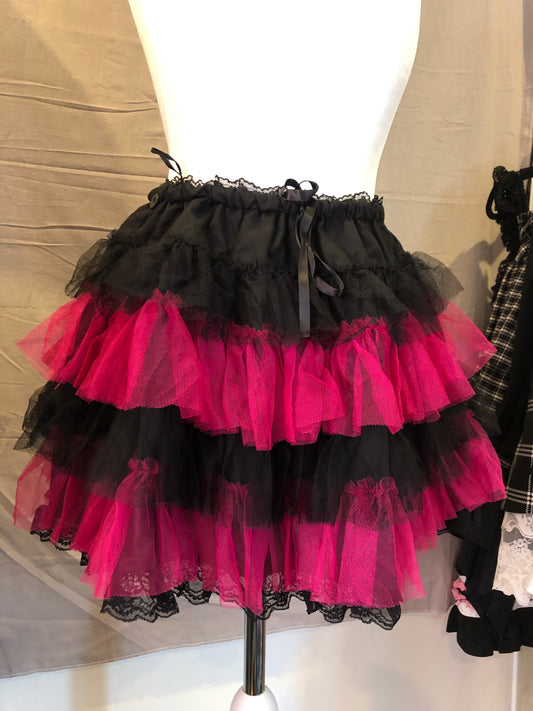 Algonquins Multi-Layers Mesh Black and Pink Skirt