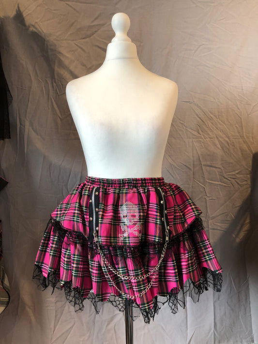 ACDC RAG Skull Print Plaid Mesh Skirt