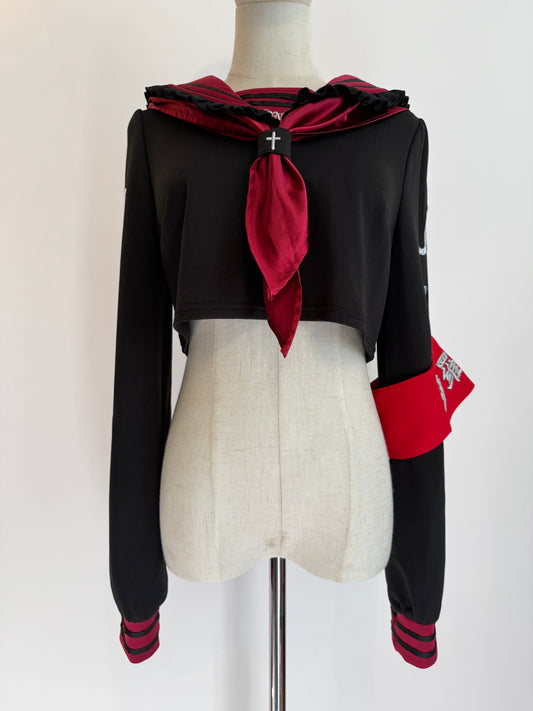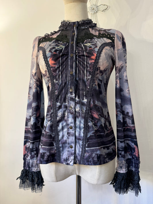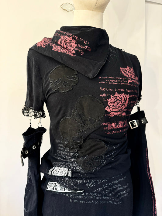 Mad Punks Rose and Skull Print Top with Detachable Sleeves