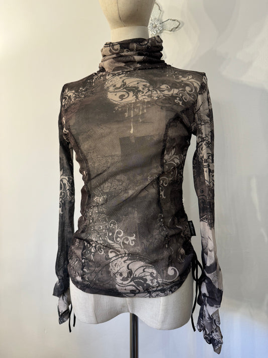 Qutie Frash Dragon Print Mesh High-Neck Top