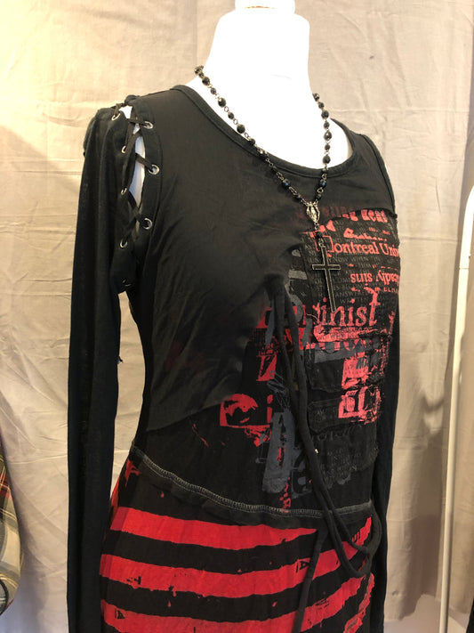Black Peace Now Qipao-Collar Hime-Sleeves Lace-Up Top