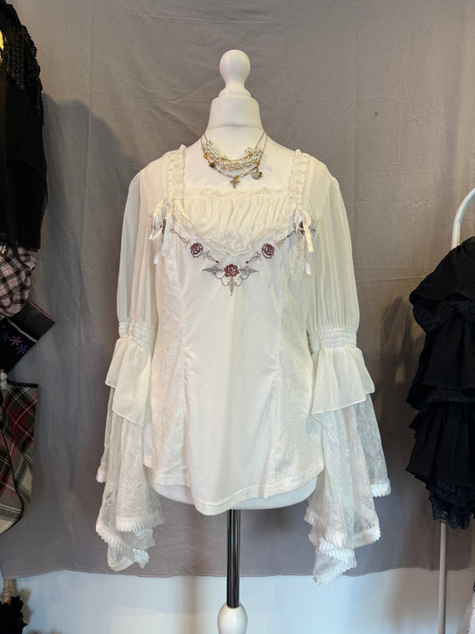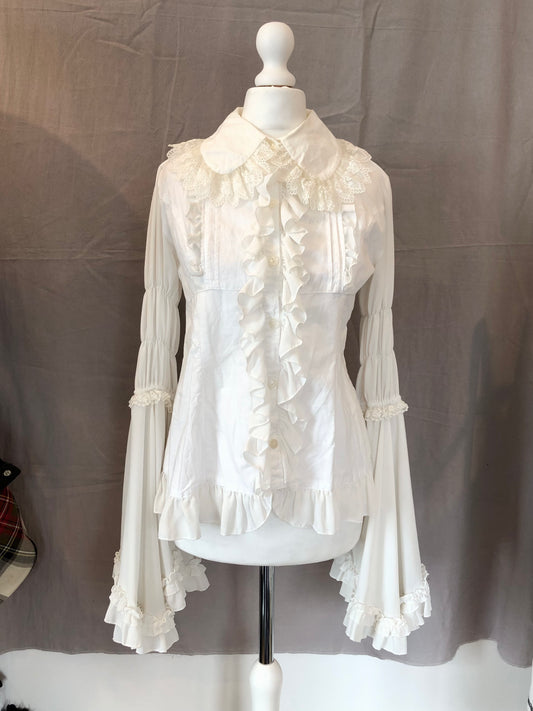 Atelier Pierrot Button-Up Hime-Sleeves Ruffle Blouse