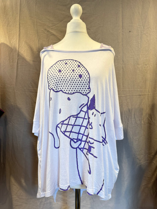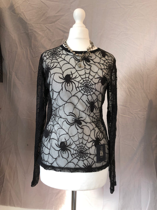 OZZ ON Hime-Sleeves Floral Print Mesh Top