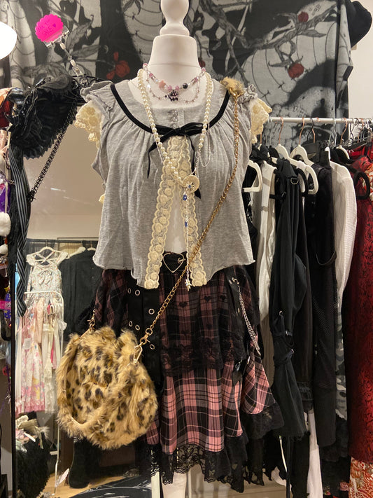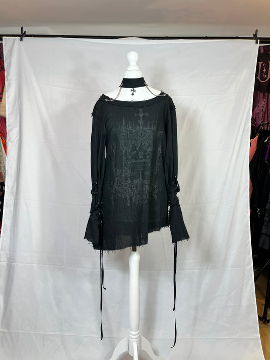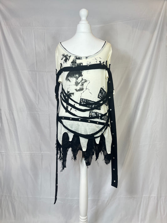 Moi-meme-Moitie Cross Print Bondage Top with Choker