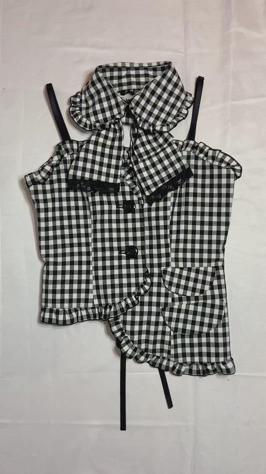 Peace Now Bow Collar Sleeveless Plaid Top