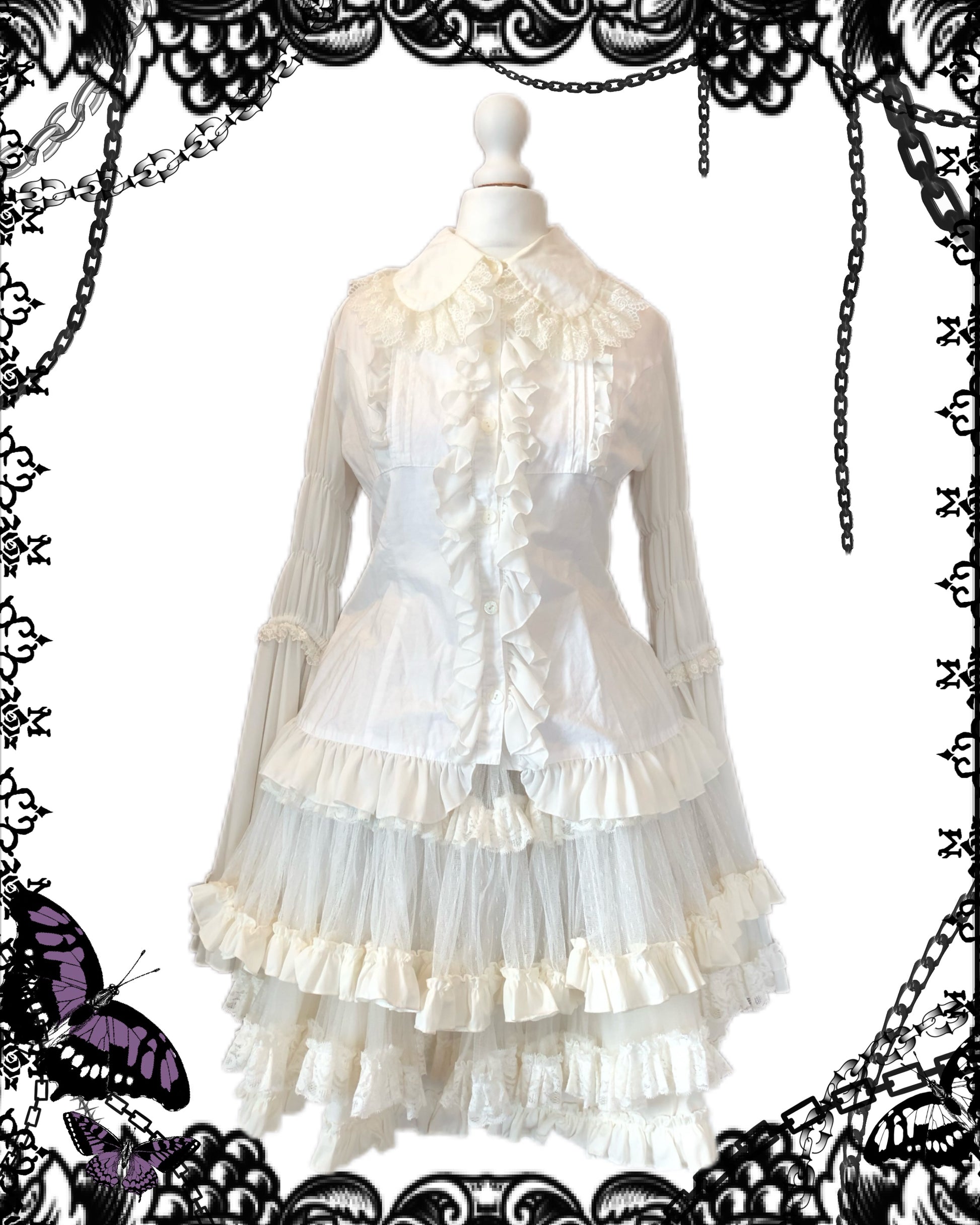 Atelier Pierrot Button-Up Hime-Sleeves Ruffle Blouse