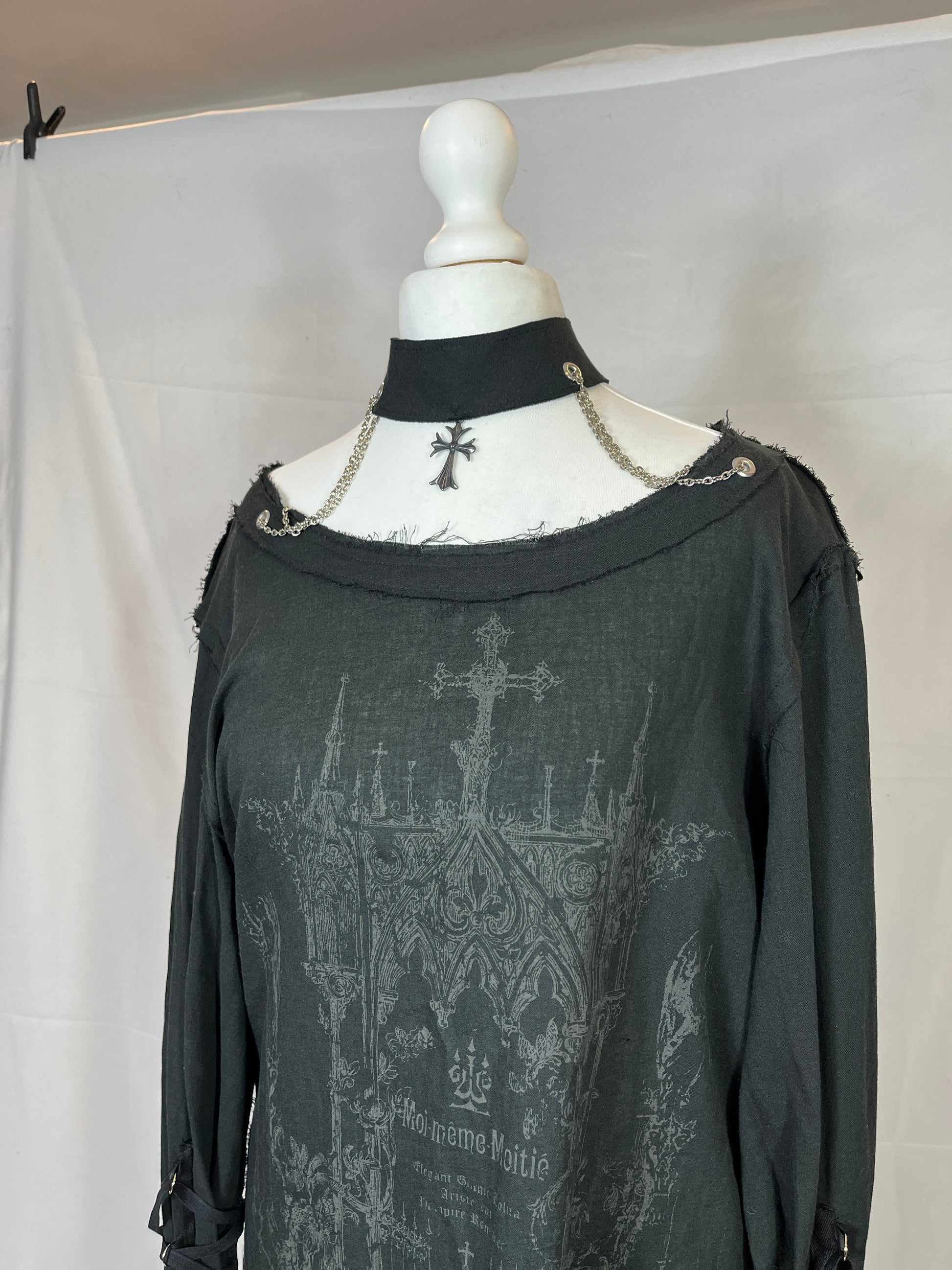 Moi-meme-Moitie Cross Print Bondage Top with Choker