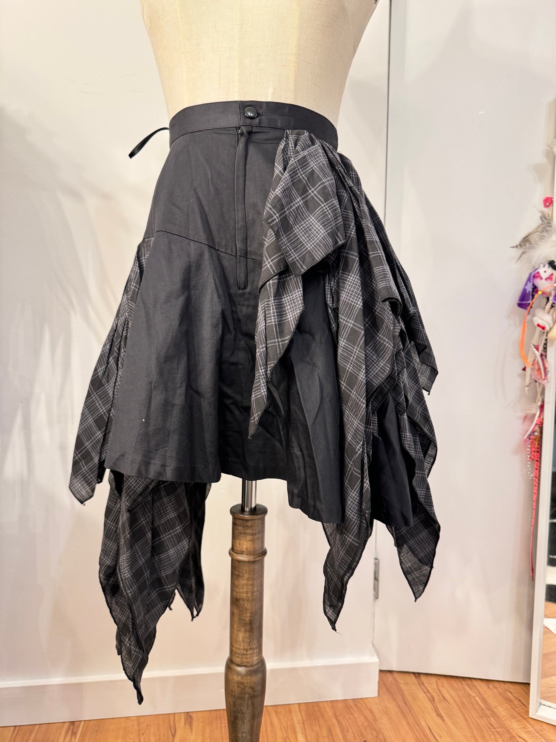 Black Peace Now Irregular Plaid Skirt