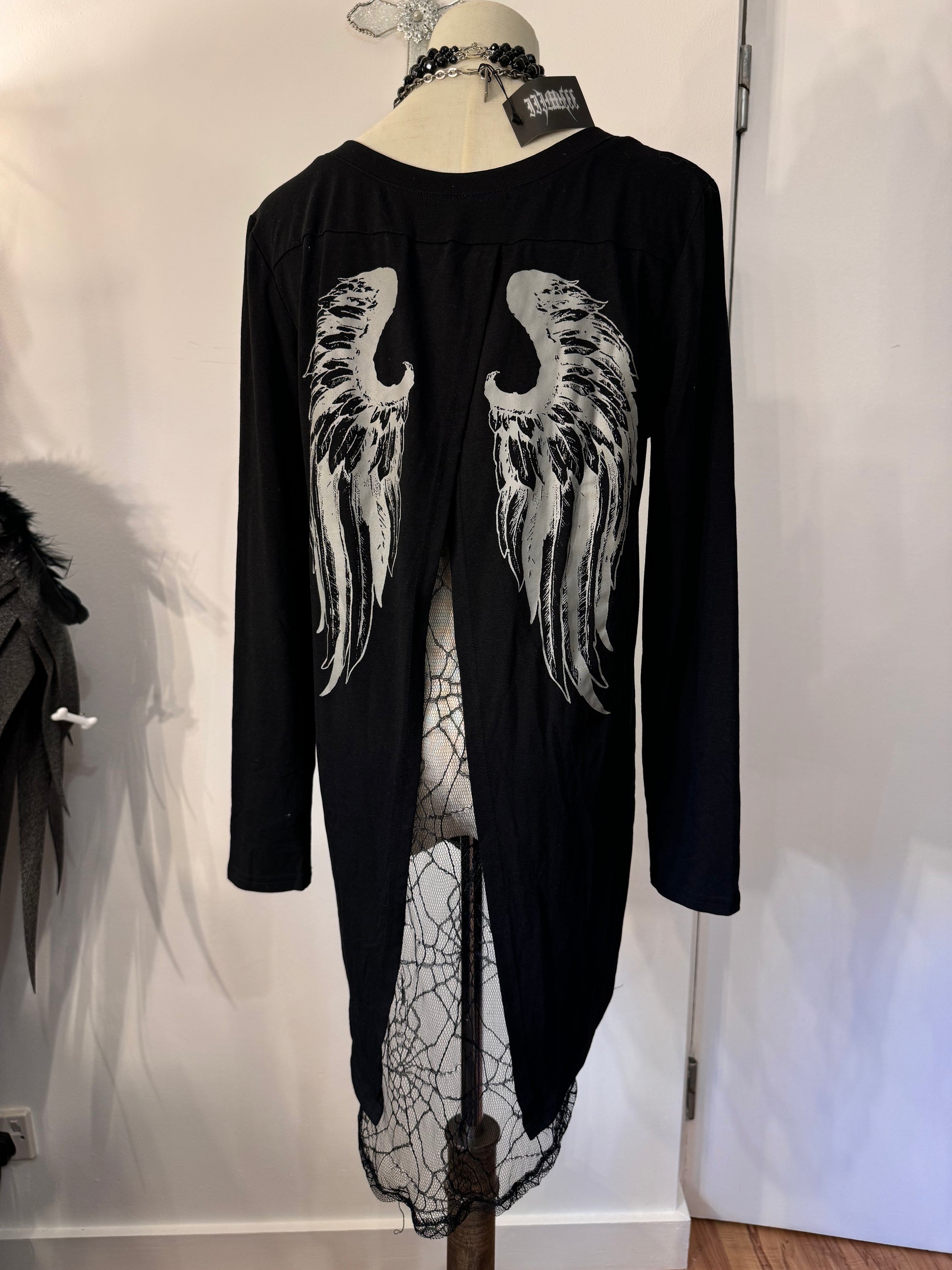 Glavil Double-Layers Skull Print Spider-Web Mesh Top