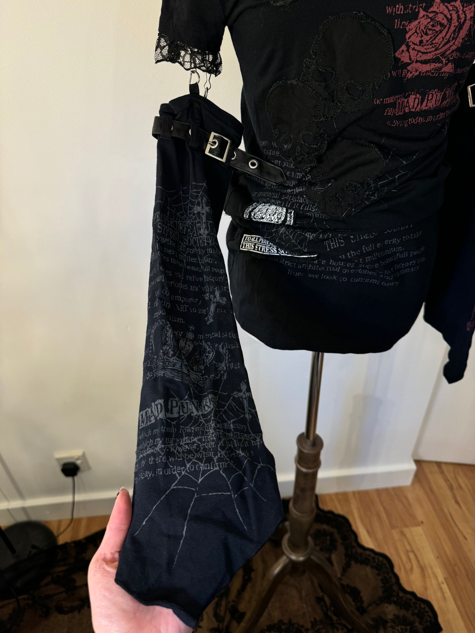 Mad Punks Rose and Skull Print Top with Detachable Sleeves