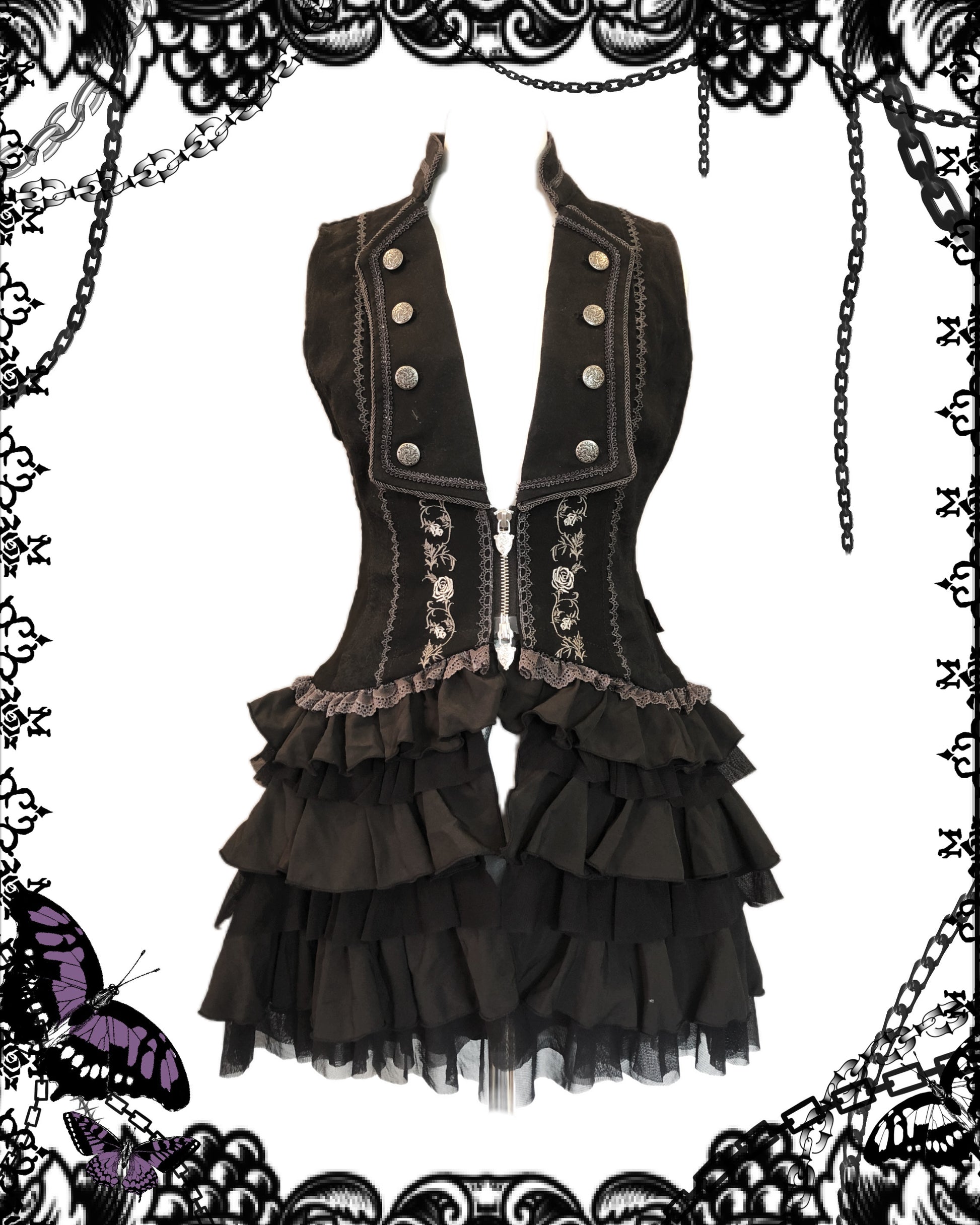 OZZ ON Floral Print Multi-Layers Vest Dress