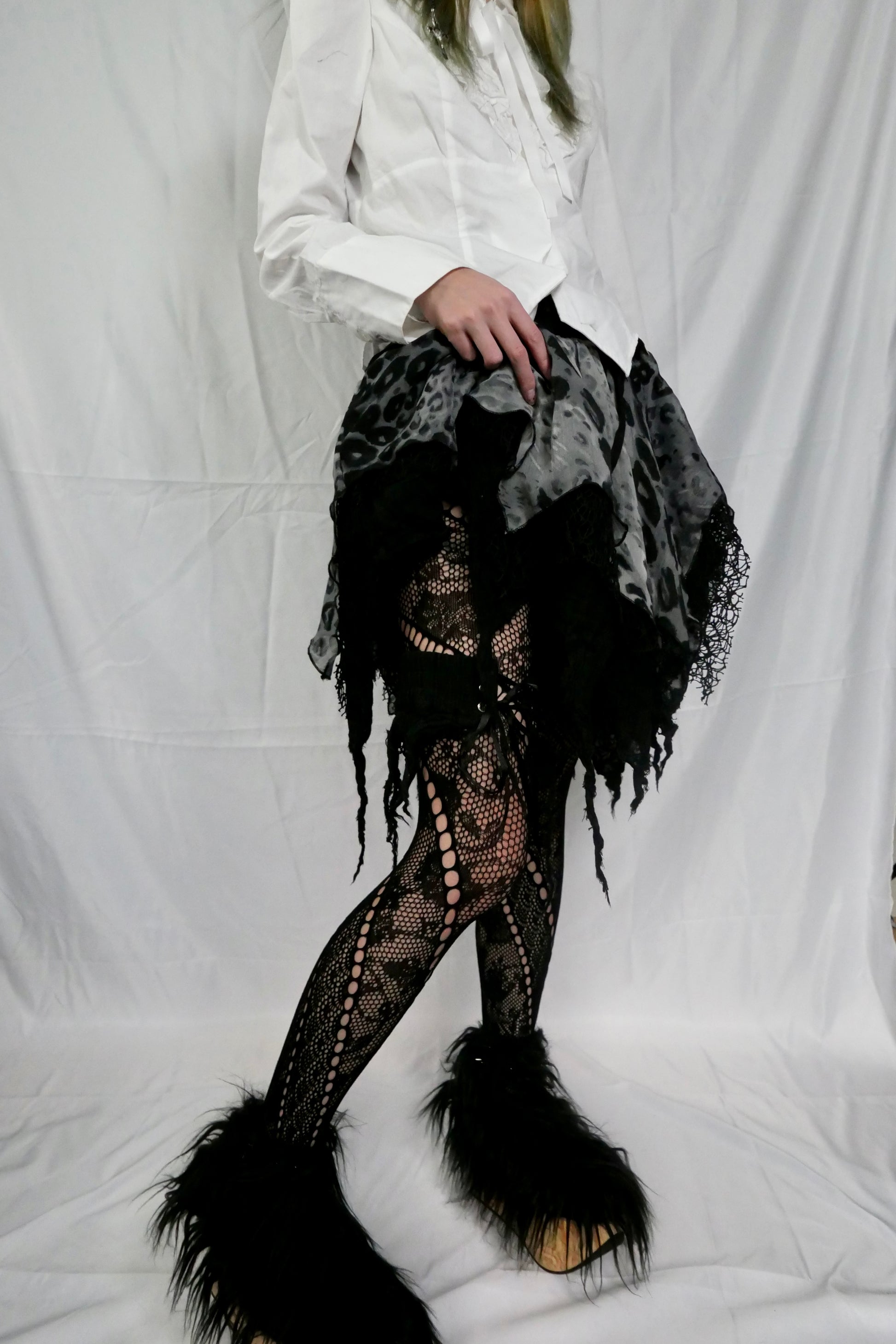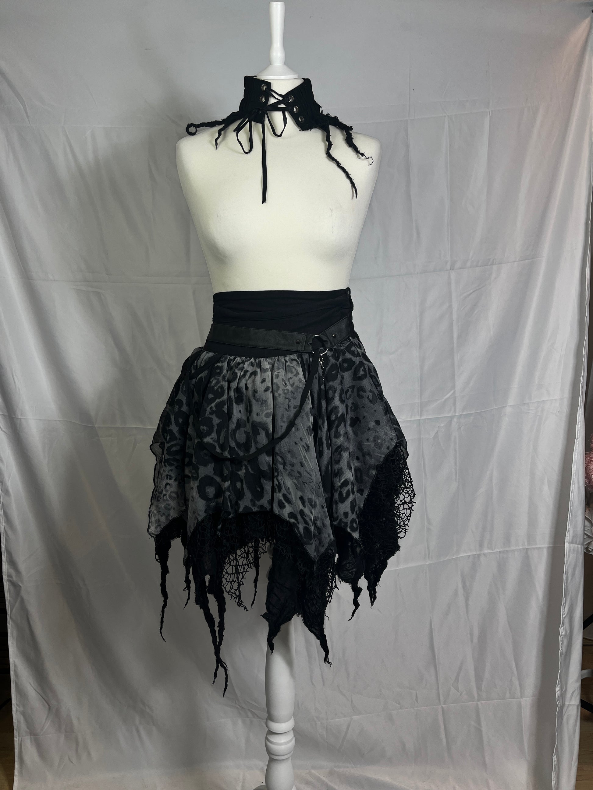 Sexpot Revenge Black Leopard Print Multi Layers Skirt with Legcuffs