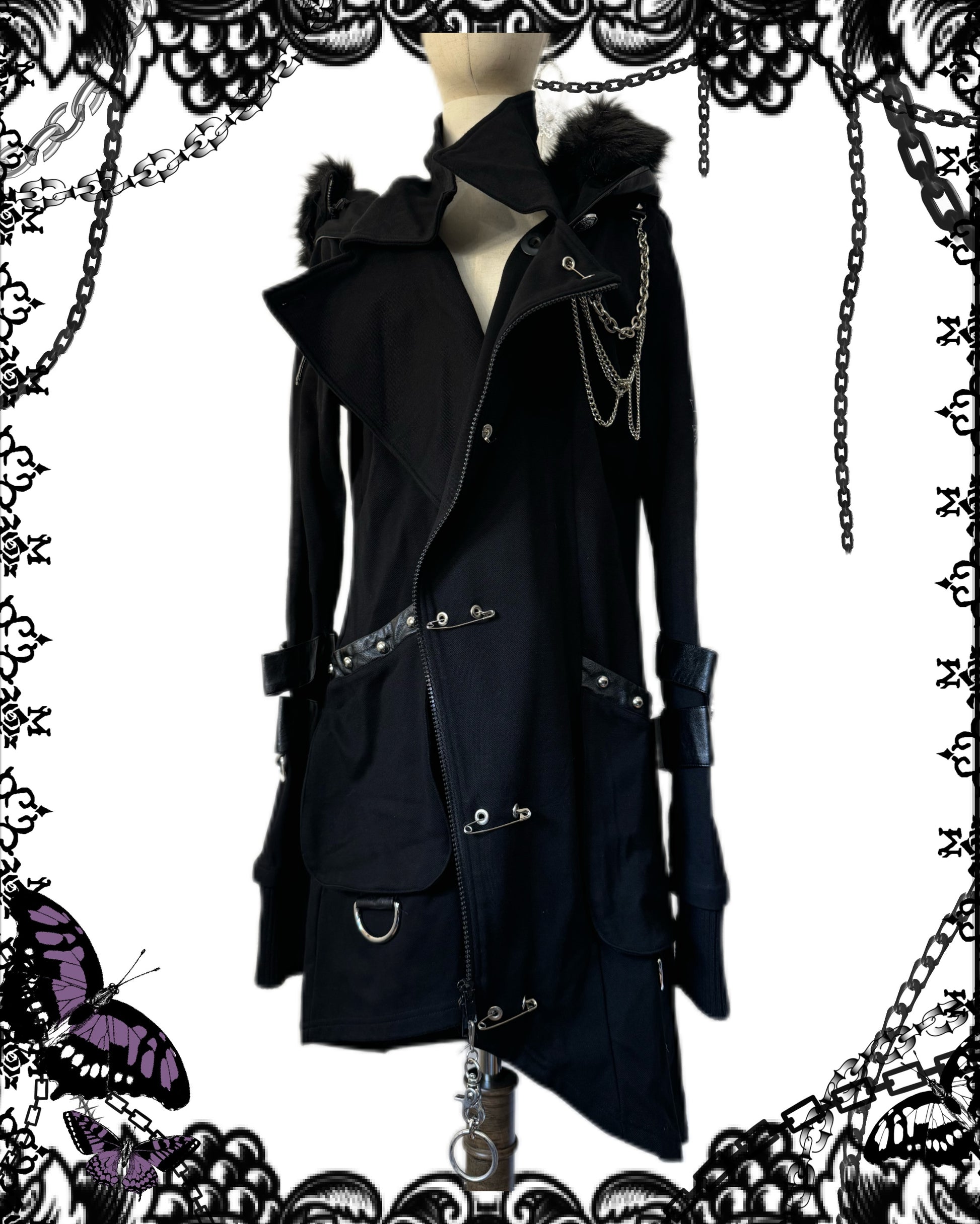 Sexpot Revenge Strap Dress Coat with Fur Hood